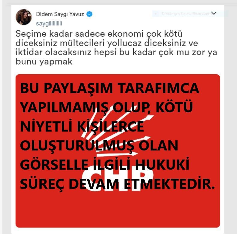 Sosyal medya hesabım olmamasına rağmen EksiUp alan adlı internet sitesinde düzenlenmiş sahte ekran görüntülerine karşı savcılığa başvurulmuştur.